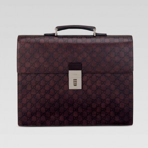 -chocolate guccissima leather-silver hardware-single handle-combination lock closure-double compartments-pen and business card holders