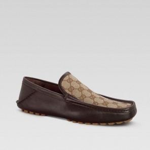 - brown leather with beige/ebony GG fabric vamp - rubber sole