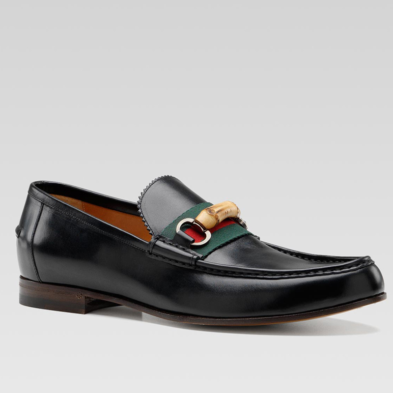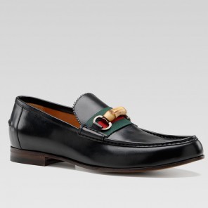 - black leather with green/red/green signature web - nickel hardware - leather sole