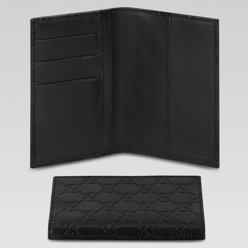 -black guccissima leather with black leather trim-three card slots-two interior pockets