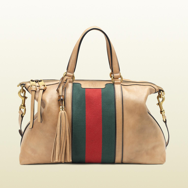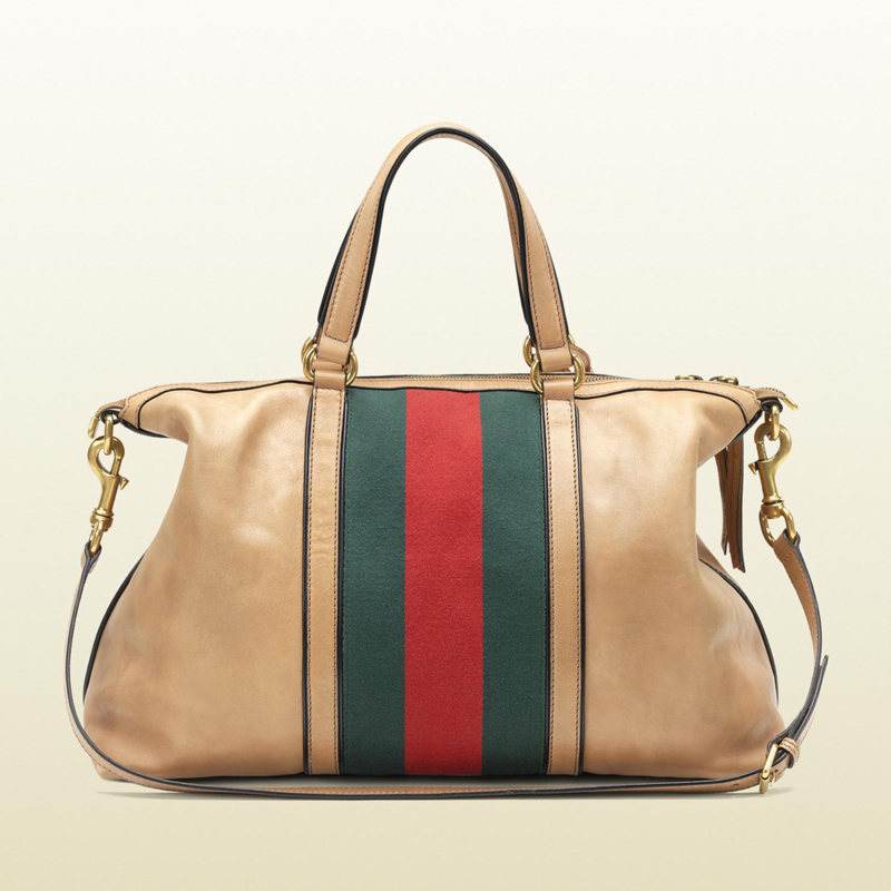 sporty, chic and cool, the leather top handle bag enriches easy denim looks for perfectly put together weekend wear.