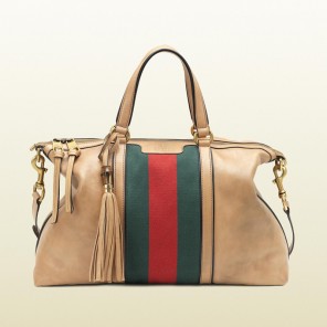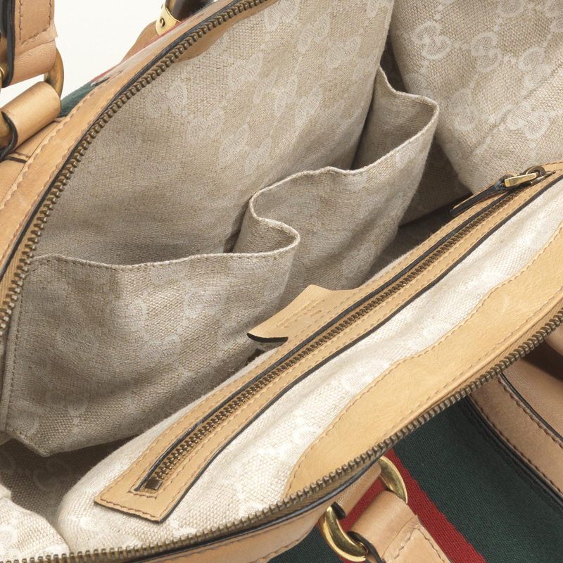 - khaki leather with signature web