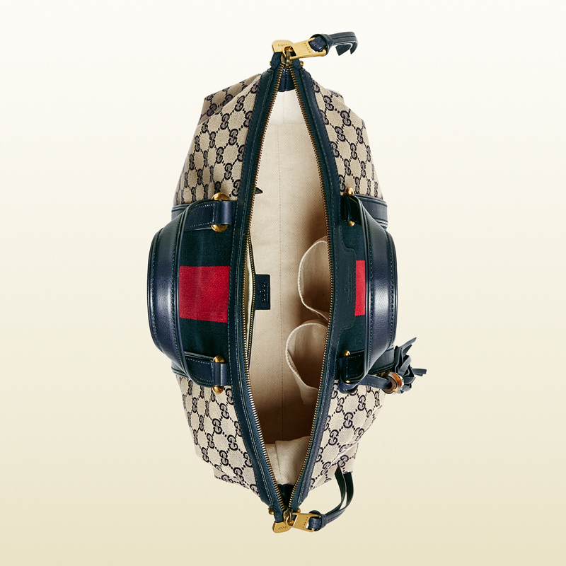 - beige/blue original GG canvas with blue leather detail and blue/red/blue nylon signature web