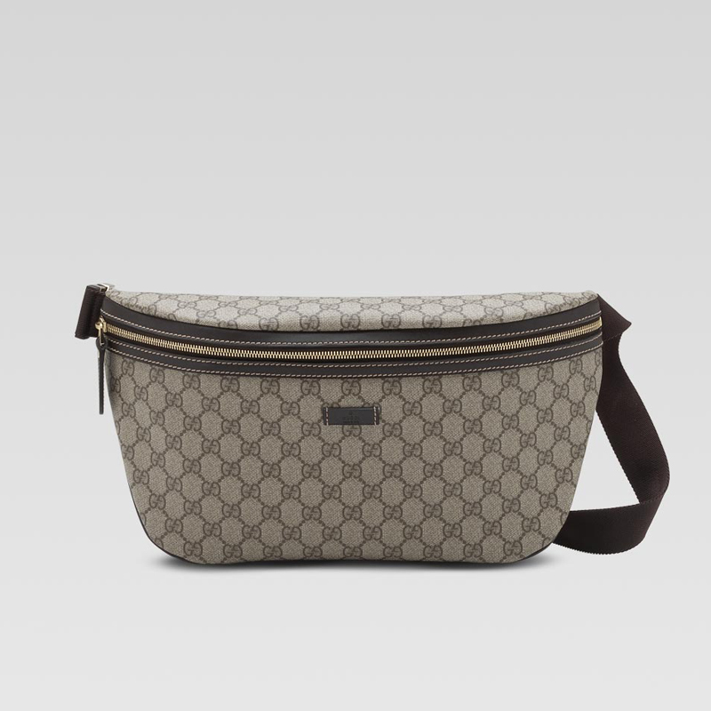 - beige/ebony GG fabric with brown leather trim - light gold hardware - adjustable shoulder strap with gucci trademark engraved clip closure - zip around closure