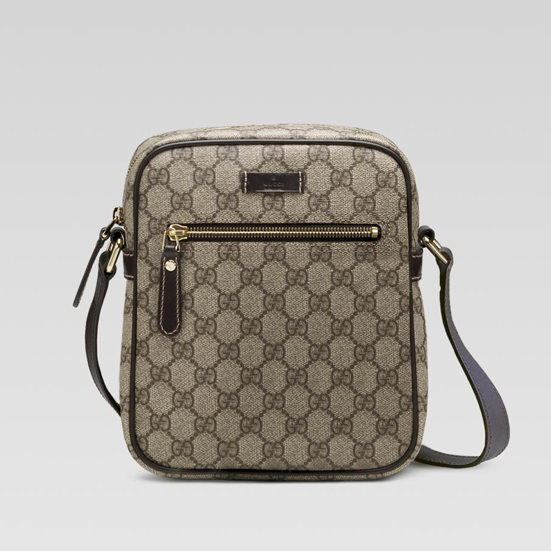 - beige/ebony GG plus with brown leather trim - light gold hardware - adjustable shoulder strap - zip-top closure - front zip pocket Product ID: 233268 FCIEG 9643