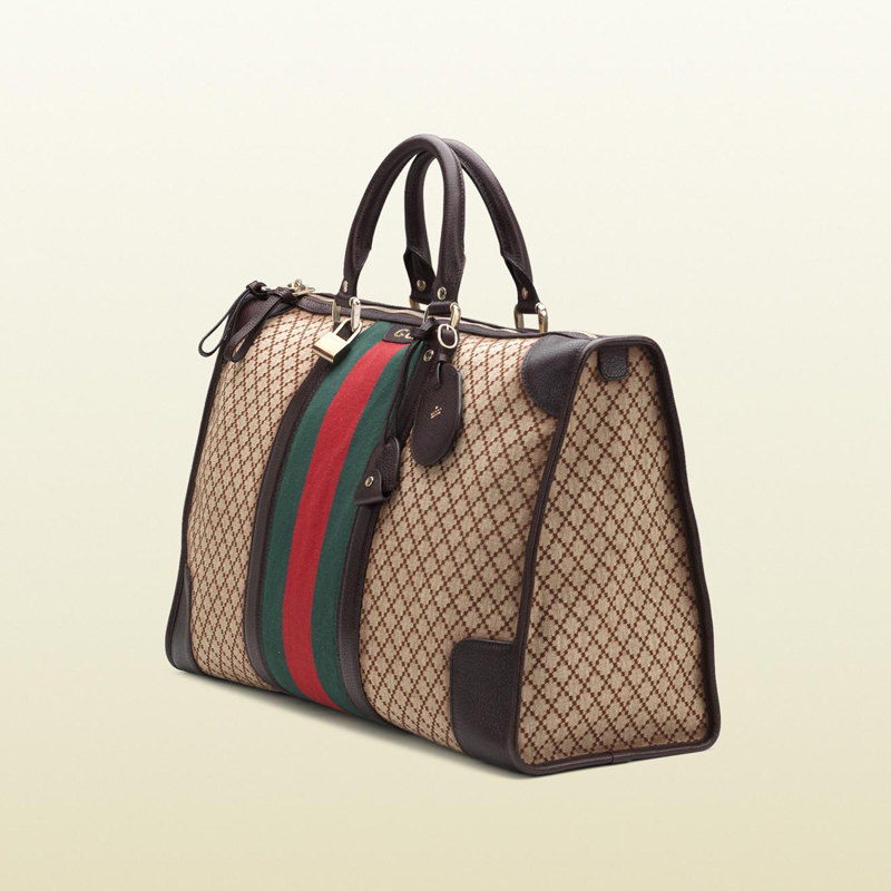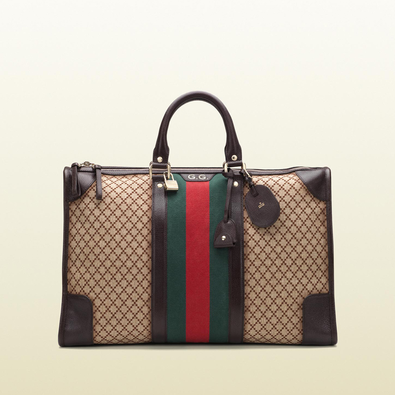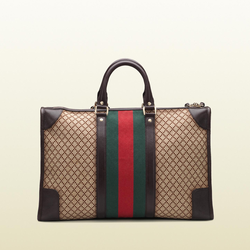 - beige/brown cotton and wool diamante canvas with green/red/green signature web and dark brown leather trim