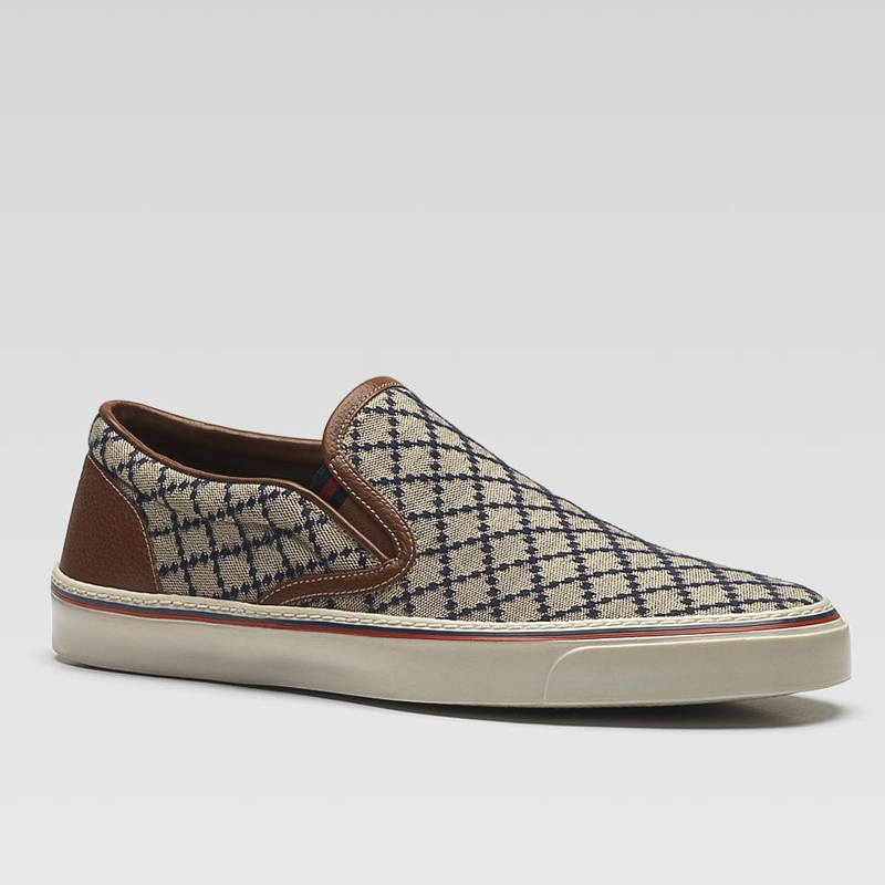 - beige/blue diamante fabric with blue/red/blue web and light brown leather trim- rubber sole- round toe
