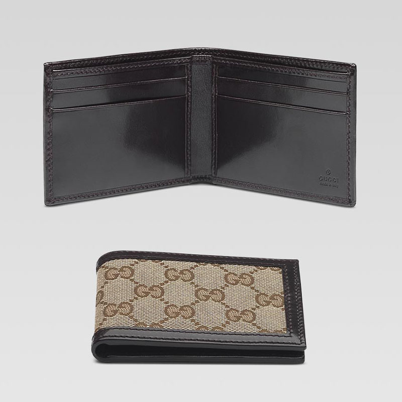 -beige/ebony GG fabric with brown leather trim/interior-four card slots and one bill compartment