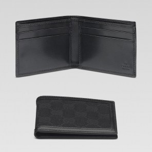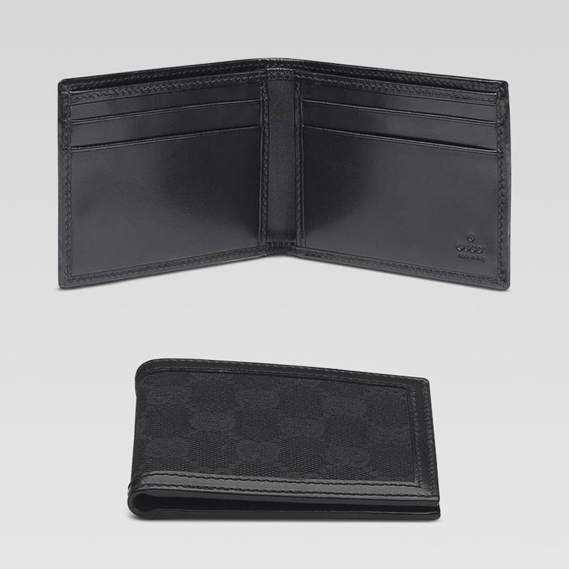 -black GG fabric with black leather trim/interior-four card slots and one bill compartment