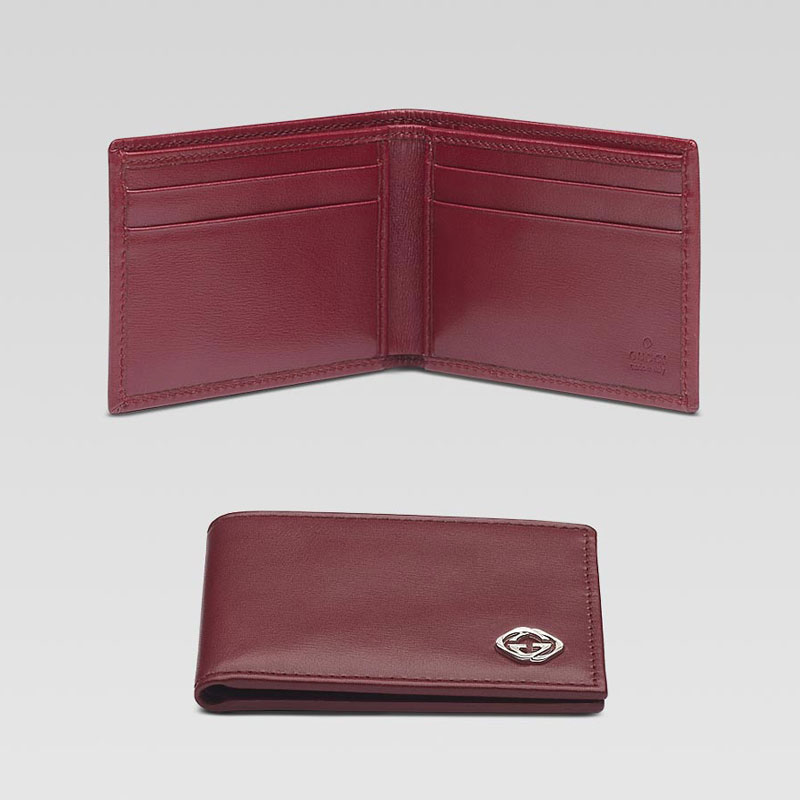 -red leather-nickel hardware-four card slots and one bill compartment-website exclusive