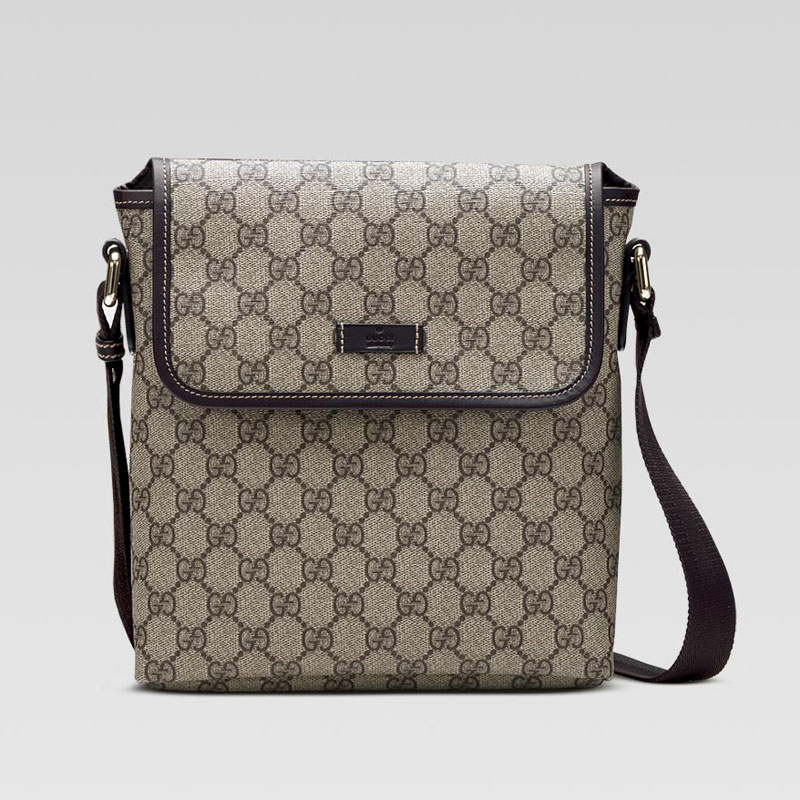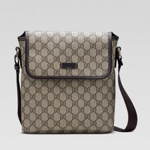 -beige/ebony GG plus with brown leather trim-single adjustable strap-flap closure with magnetic snap-inside pocket-website exclusive
