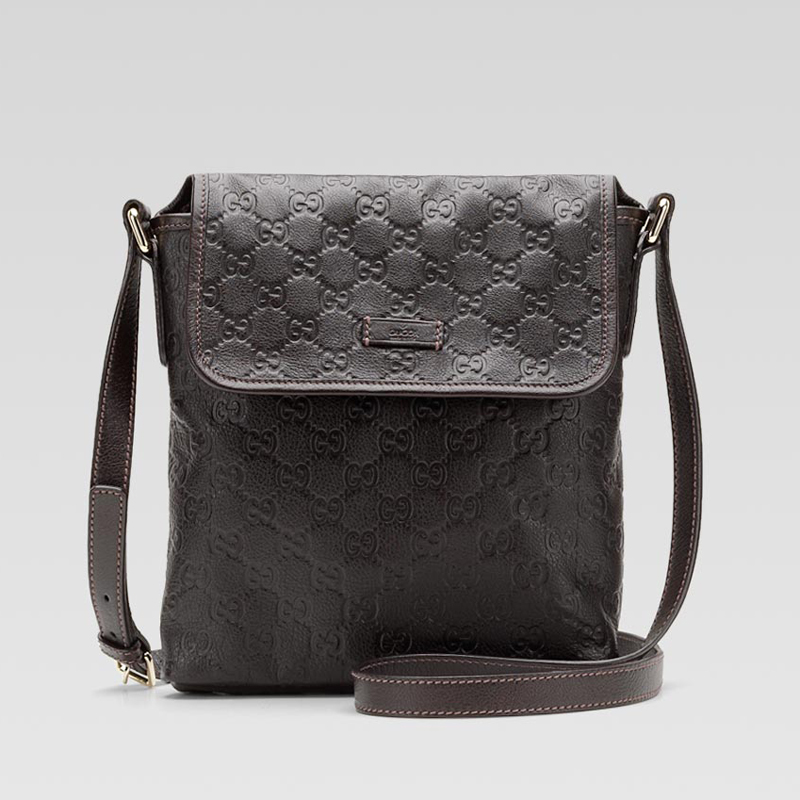 - dark brown guccissima leather with brown leather trim - light gold hardware - adjustable strap - flap closure with magnetic snap - inside zip pocket Product ID: 223666 BEG1G 2145