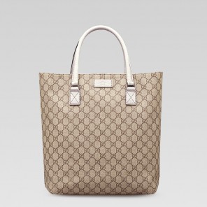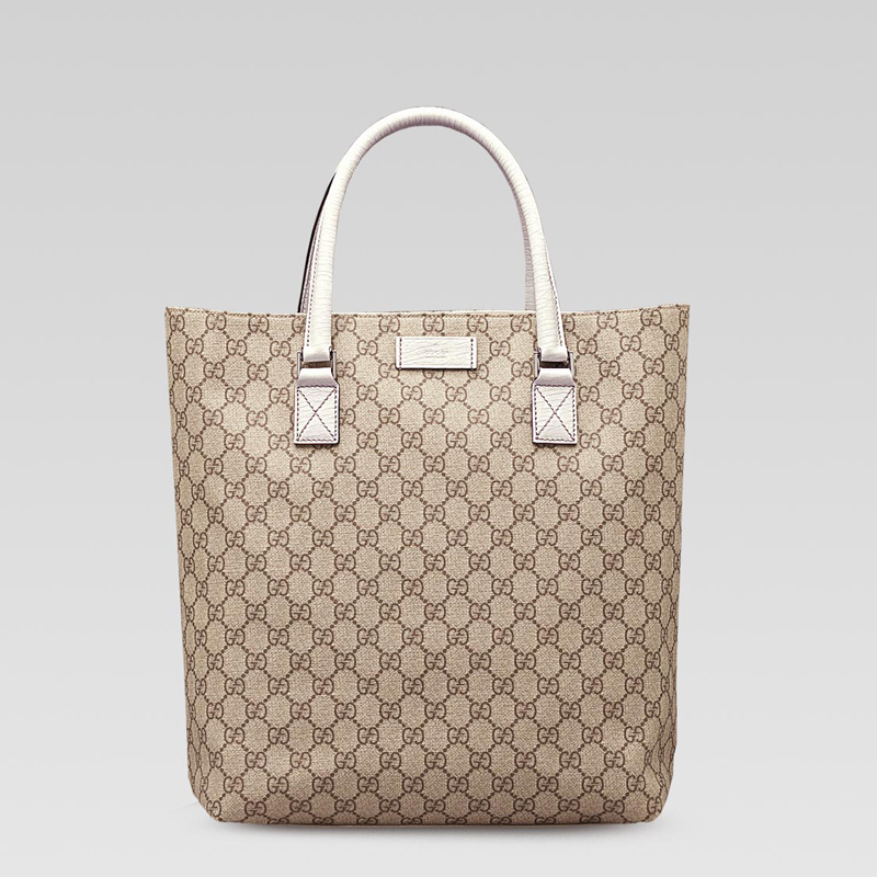 - beige/ebony GG plus with white leather trim. - double handles - magnetic snap closure
