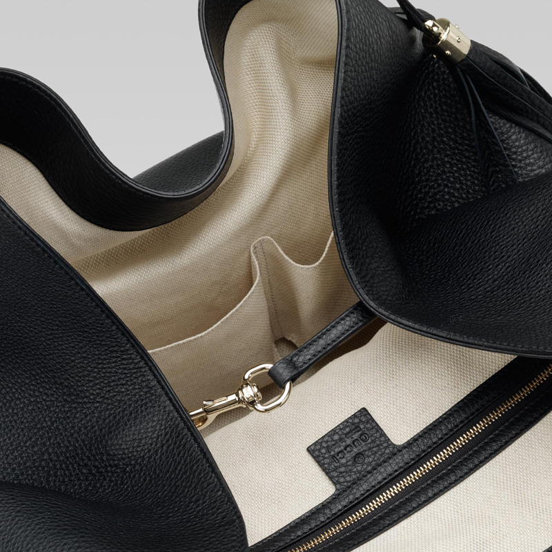 - padded interlocking G and tassel details