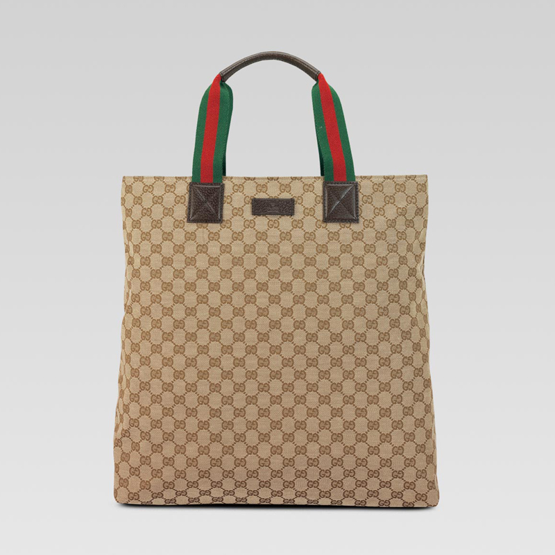 - beige/ebony GG fabric with dark brown leather trim - double handles in green/red/green signature web handles - zip-top closure
