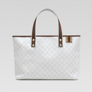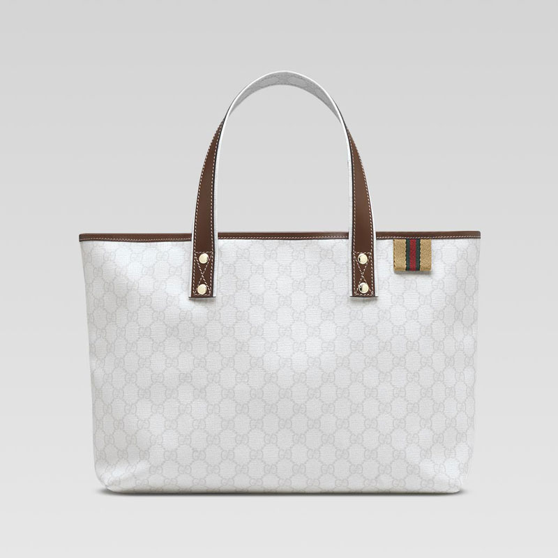 -white GG plus with beige/green/red web and light brown leather trim-double handles-inside pocket