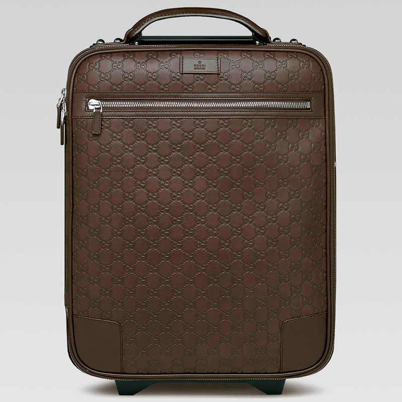 -chocolate guccissima leather with chocolate leather trim-silver hardware-retractable handle-double zip closure with lock-identification tag-exterior zip pocket