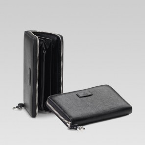 - black leather - ruthenium hardware - zip around closure - twelve card slots and three bill compartments - zip coin pocket