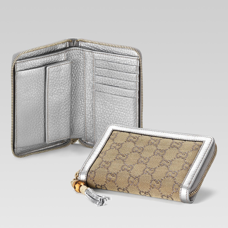zip around wallet with tassel and bamboo detail.