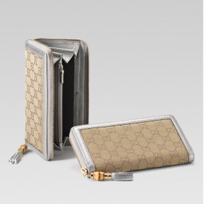- beige/silver original GG glam fabric with dark silver leather trim/interior