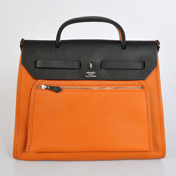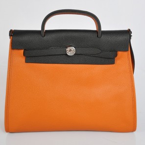 2012 New Hermes HerBag 31CM Togo leather Bag 9051 Black/Orange