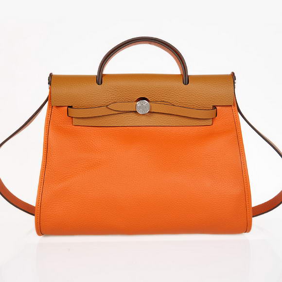 2012 New Hermes HerBag 31CM Togo leather Bag 9051 Orange Camel