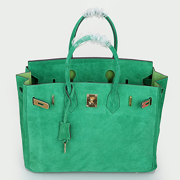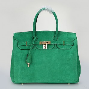2014 Hermes Birkin 35CM Tote Bag Green Nubuck Leather H35 Gold hardware