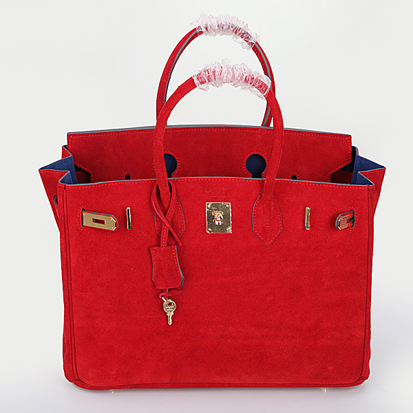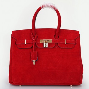 2014 Hermes Birkin 35CM Tote Bag Red Nubuck Leather H35 Gold hardware