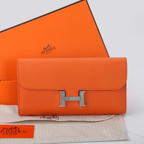 2014 Hermes Constance Long Wallets Original Calfskin Leather A909 Orange