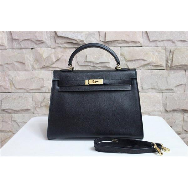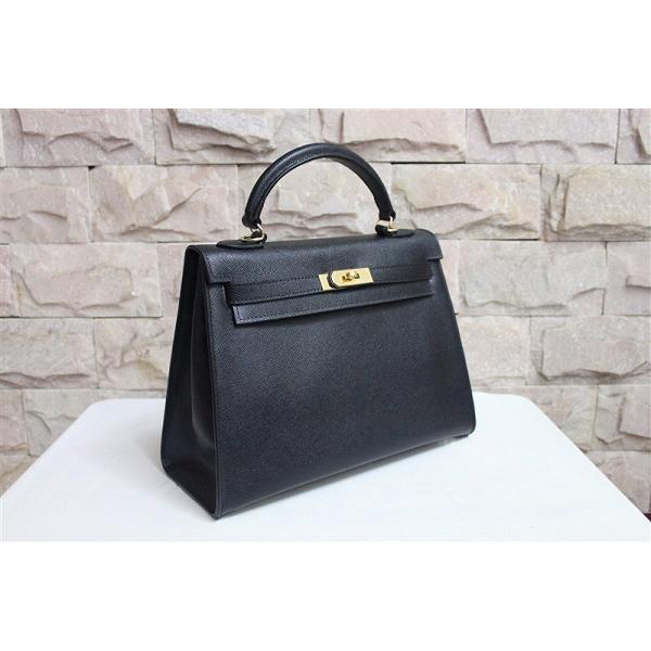 2014 Hermes Kelly 28cm Epsom Leather Bag Black with Gold hardware