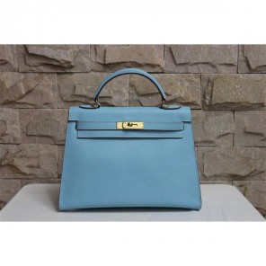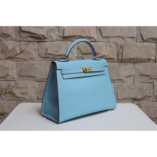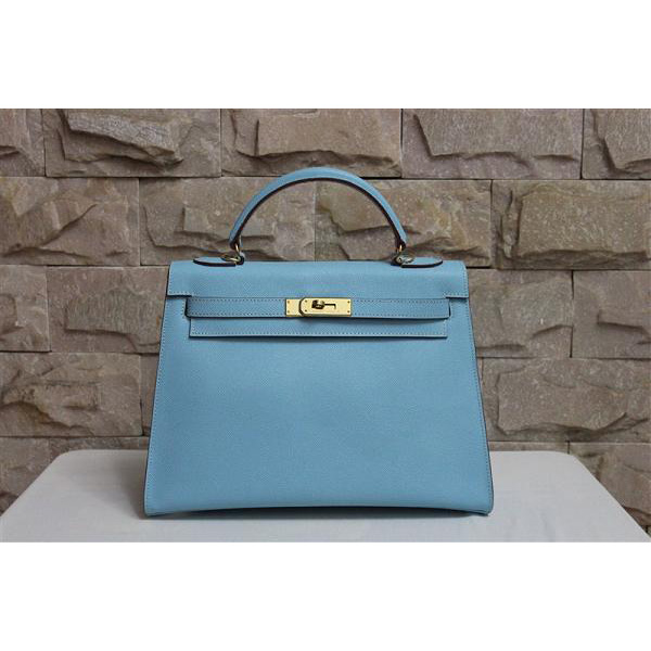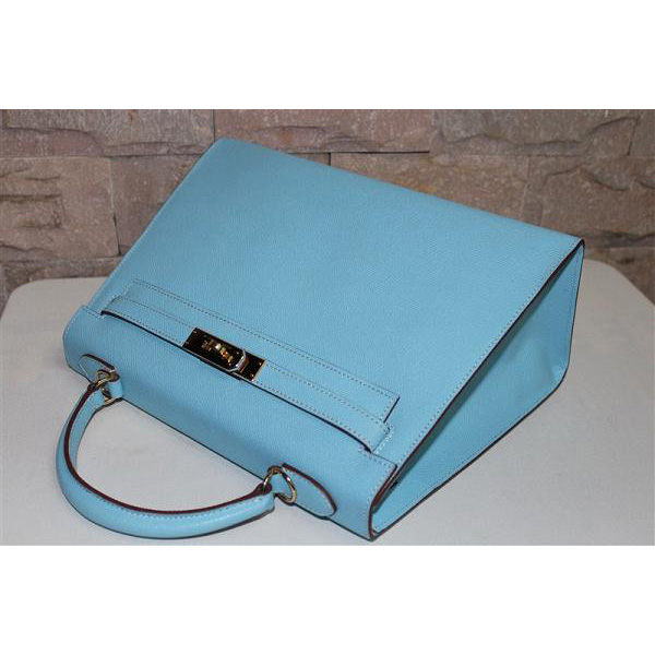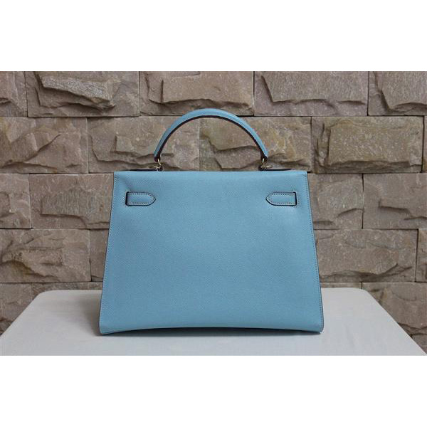 2014 Hermes Kelly 28cm Epsom Leather Bag Light Blue with Gold hardware