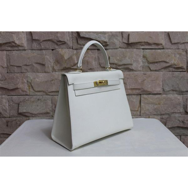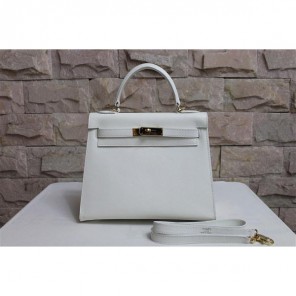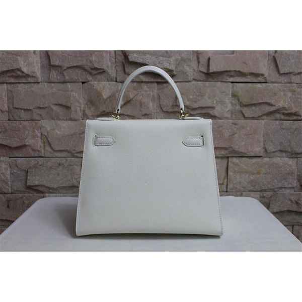 2014 Hermes Kelly 28cm Epsom Leather Bag White with Gold hardware