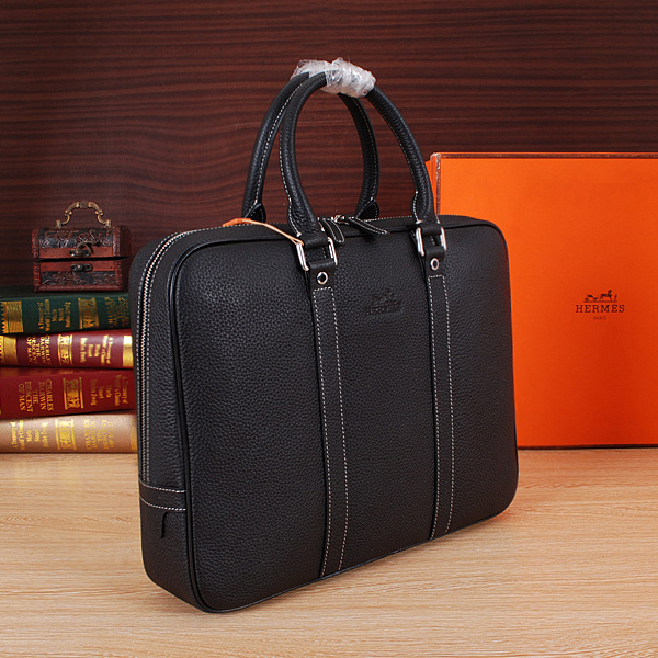 2015 Hermes Briefcase Grainy Leather H8010 Black