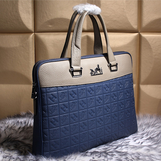 2015 Hermes Mens Briefcase Grainy Leather HC31 in Blue