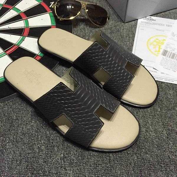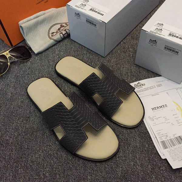 2015 new arrivals Hermes men slippers shoes in Snakeskin stripe leather