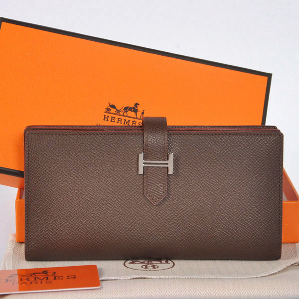 Hermes 2 flod original leather wallet in Dark Brown Come with Hermes authenticity card, Hermes tags,Hermes wallet dust bag, Hermes wallet box and Hermes care booklet.