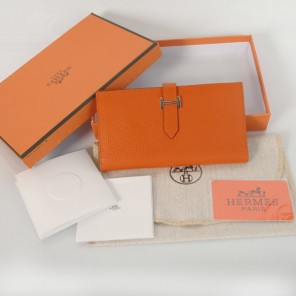Hermes 2 fold wallet clemence leather in Orange Come with Hermes authenticity card, Hermes tags,Hermes wallet dust bag, Hermes wallet box and Hermes care booklet.