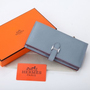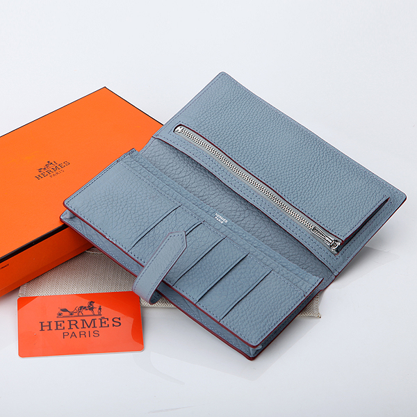 Hermes Bearn Japonaise Bi-Fold Wallet Original Clemence Leather A208 Sky Blue