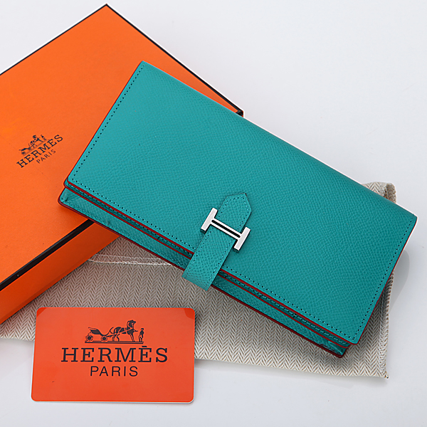 Hermes Bearn Japonaise Bi-Fold Wallet Original Saffiano Leather A208 Lake Blue