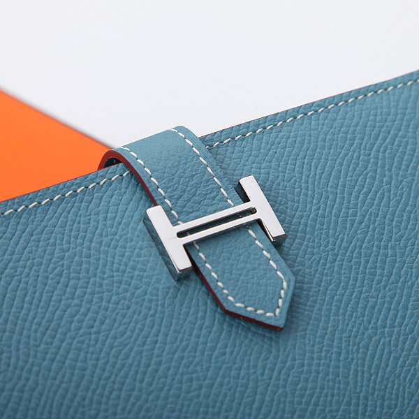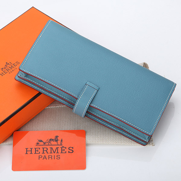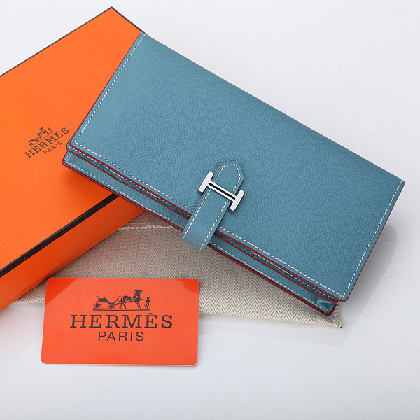 Hermes Bearn Japonaise Bi-Fold Wallet Original Saffiano Leather A208 Light Blue
