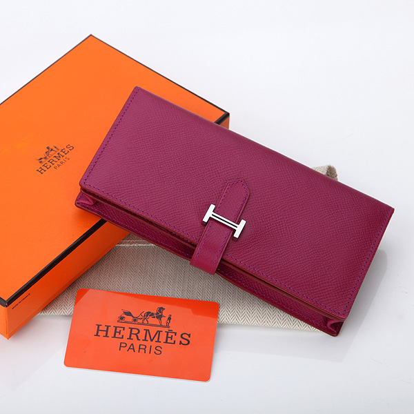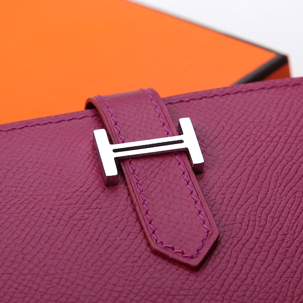 Hermes Bearn Japonaise Bi-Fold Wallet Original Saffiano Leather A208 Red Purple