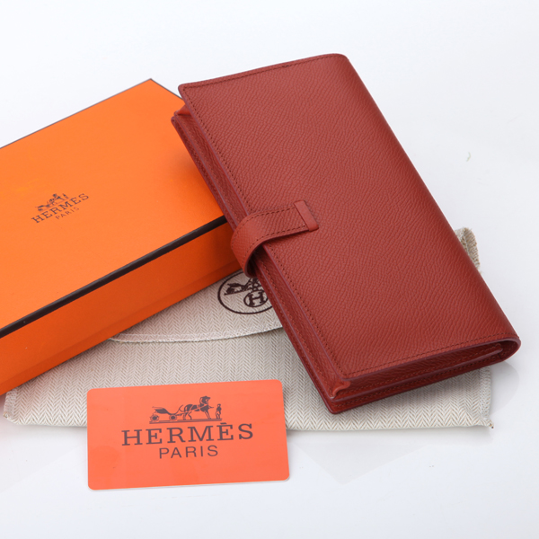 Hermes Bearn Japonaise Bi-Fold Wallet Original Saffiano Leather A208 Red brown