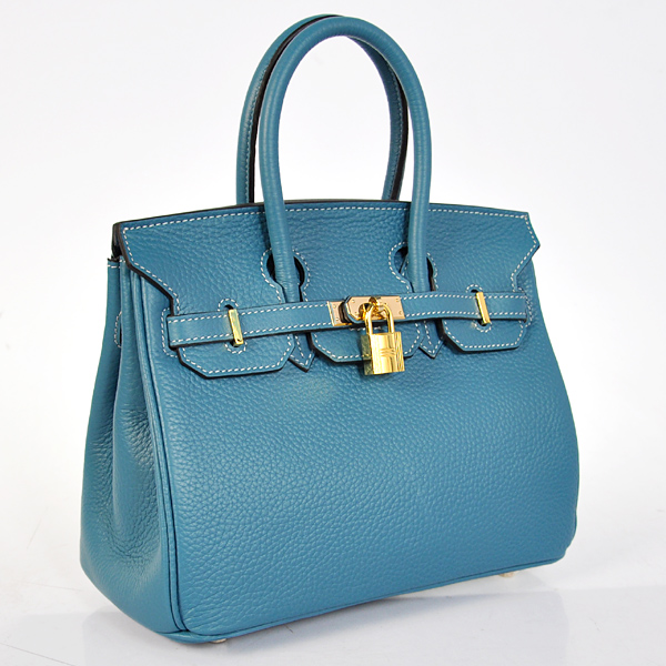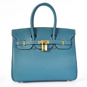 Hermes Birkin 25CM clemence leather in Medium Blue with Gold hardware