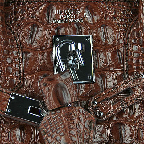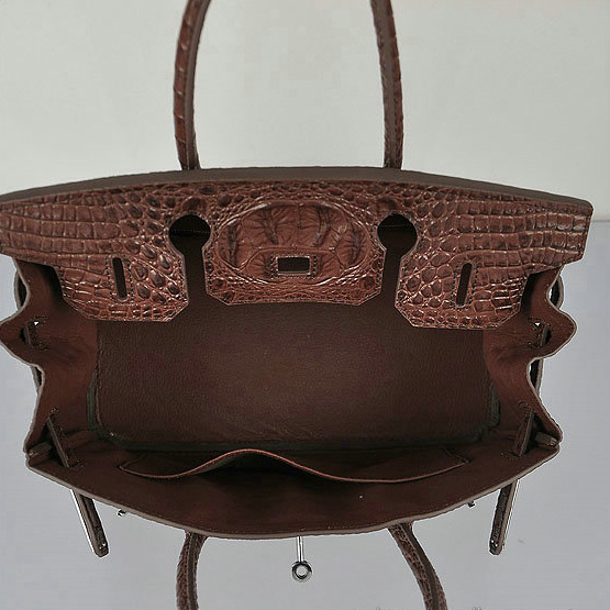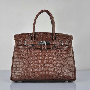 Hermes Birkin 30CM Tote Bag Croco Brown Leather H6088 Silver