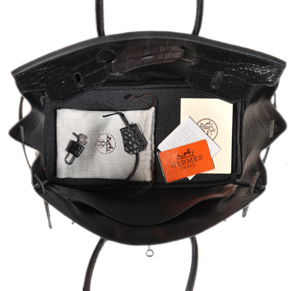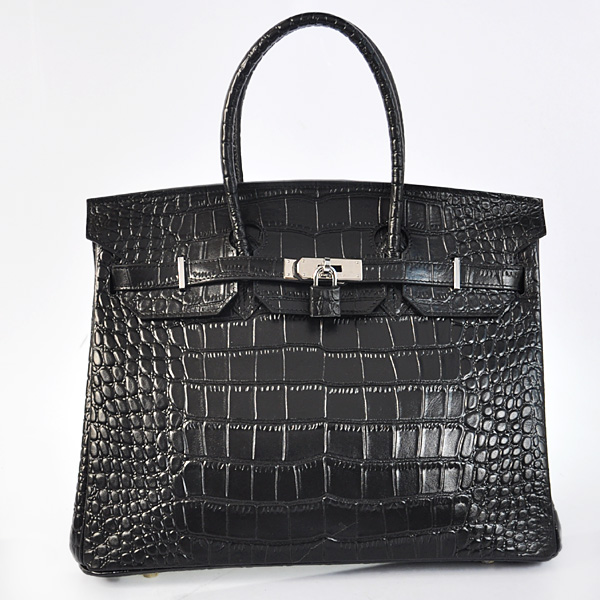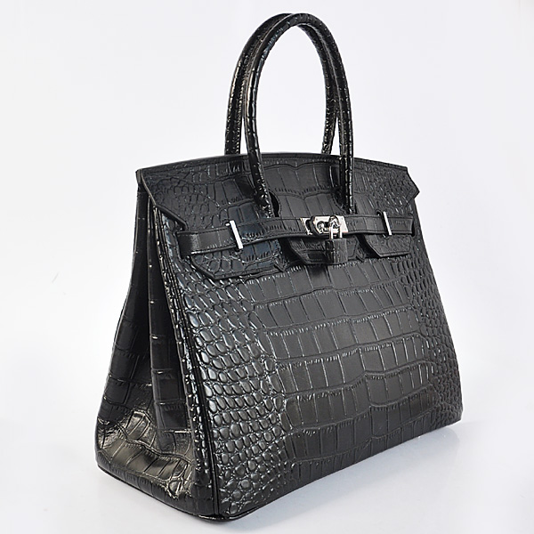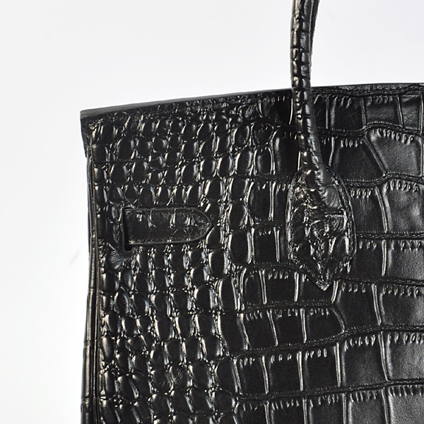 - Hermes Birkin 35CM Black Crocodile stripes leather(Silver)