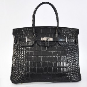 Hermes Birkin 35CM Black Crocodile stripes leather(Silver)