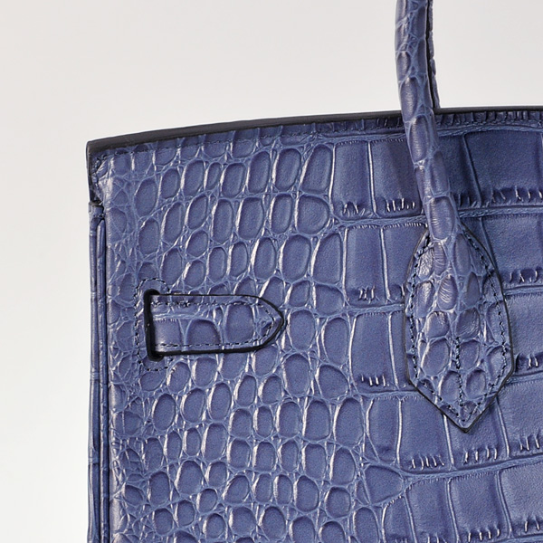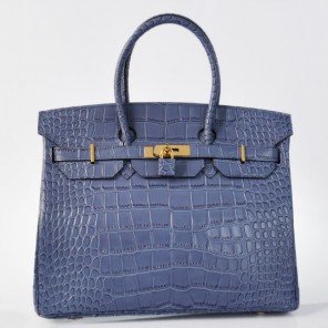 - Hermes Birkin 35CM Blue Crocodile stripes leather(Gold)