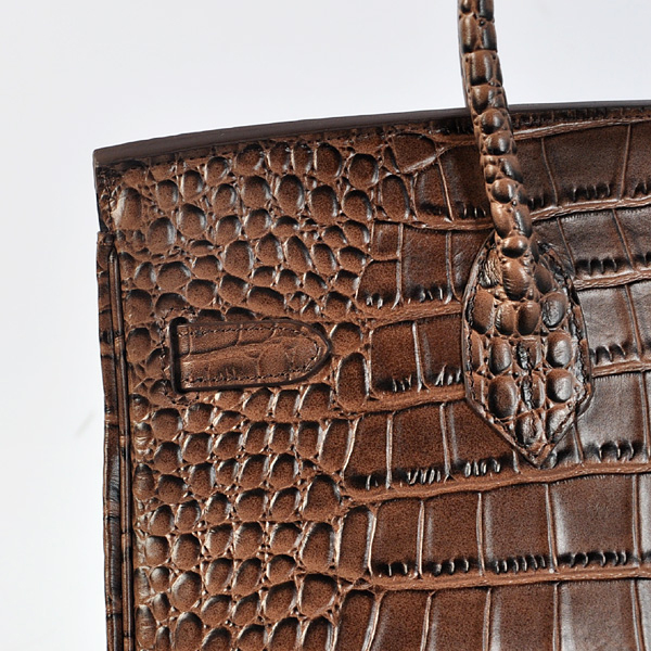 - Hermes Birkin 35CM Crocodile stripes leather in Dark Brown with Gold hardware
