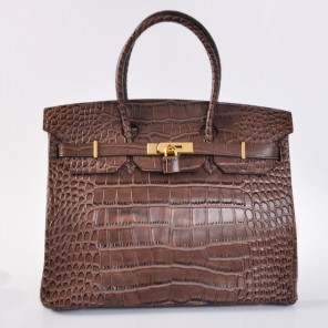 Hermes Birkin 35CM Crocodile stripes leather in Dark Brown with Gold hardware Come with Hermes authenticity card, Hermes tags,Hermes dust bag and Hermes care booklet.
