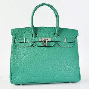- Hermes Birkin 35CM Lake Green clemence leather(Silver)